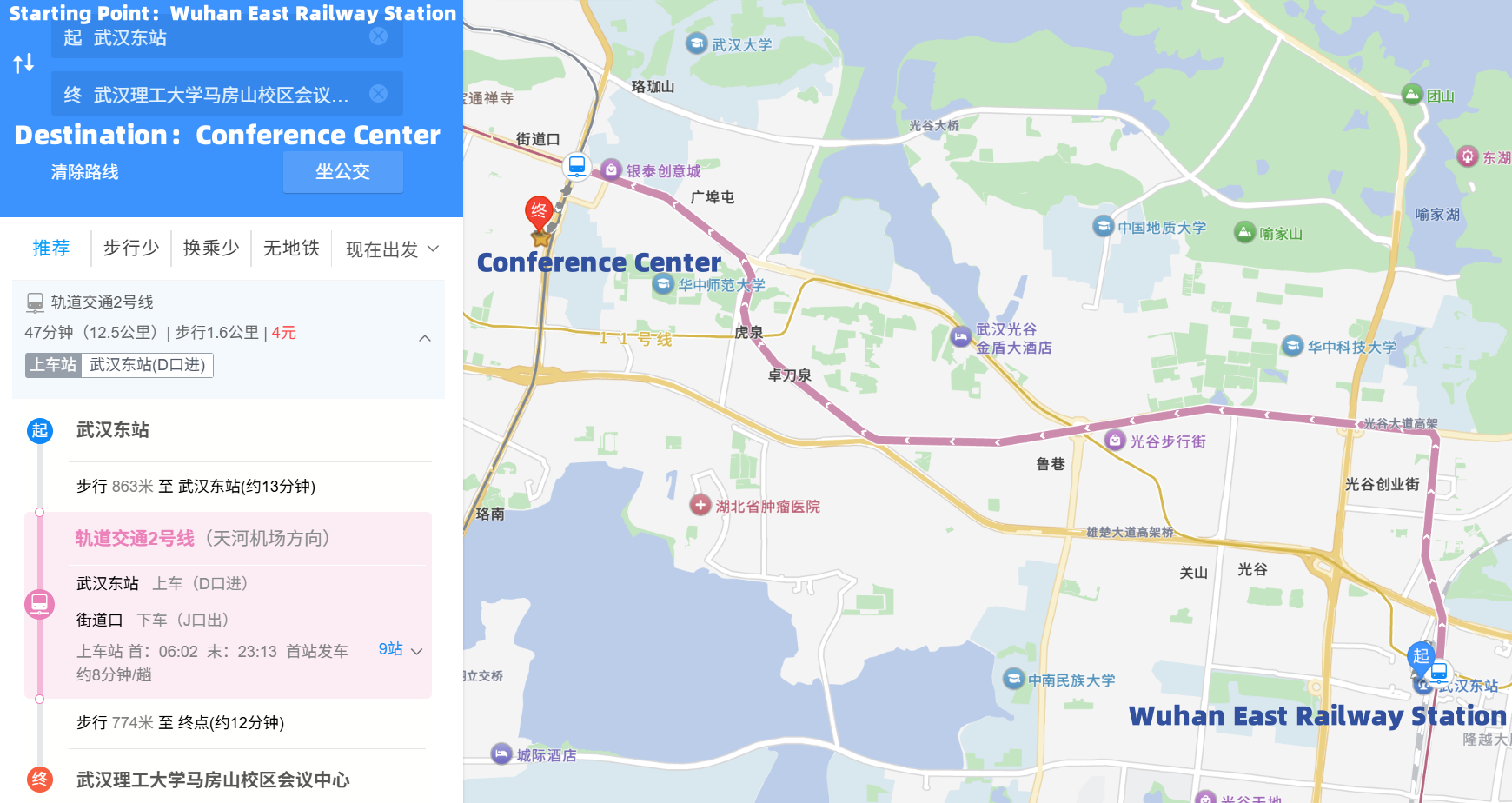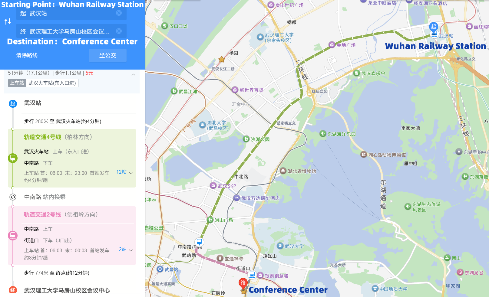 Wuhan East Railway Station → Conference Center