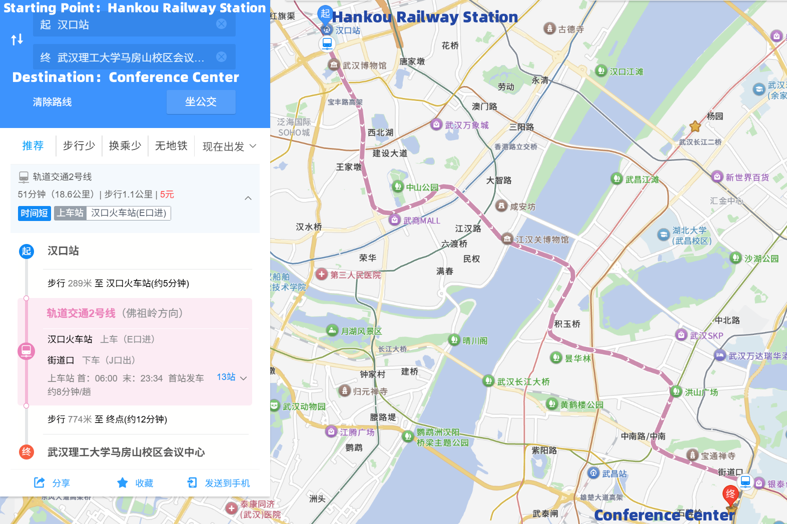 3. 汉口站→ 会议中心